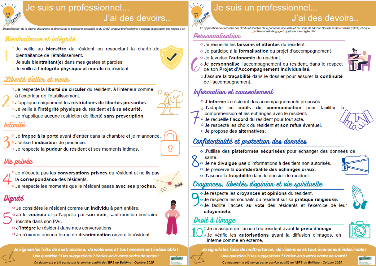 Associée à ces outils, une affiche sur les règles d'or des professionnels a également été produite.