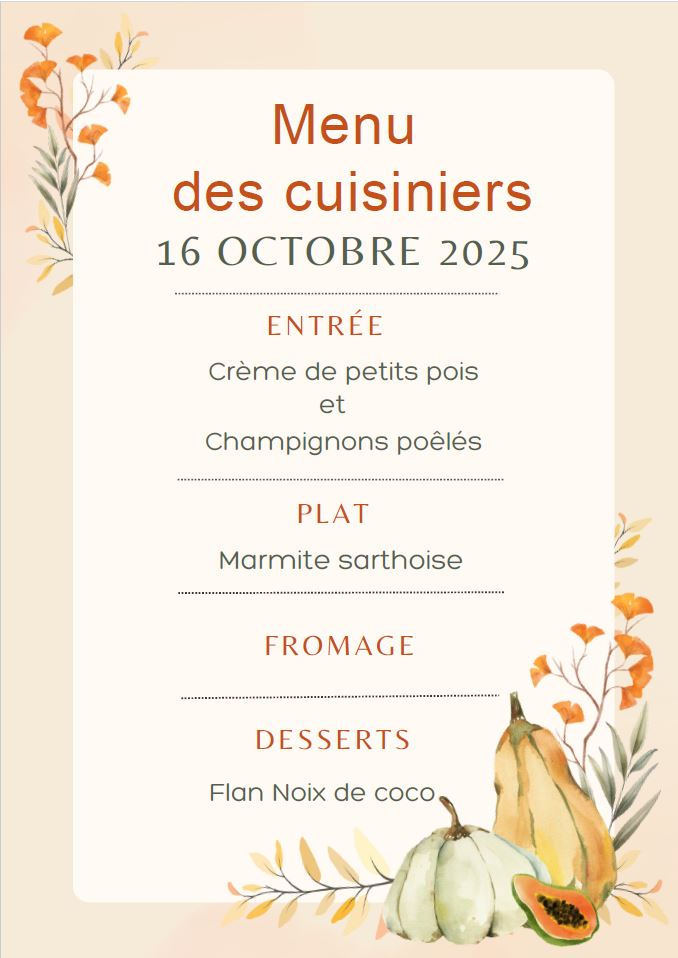 Le 16 octobre "Menu des Cuisiniers"